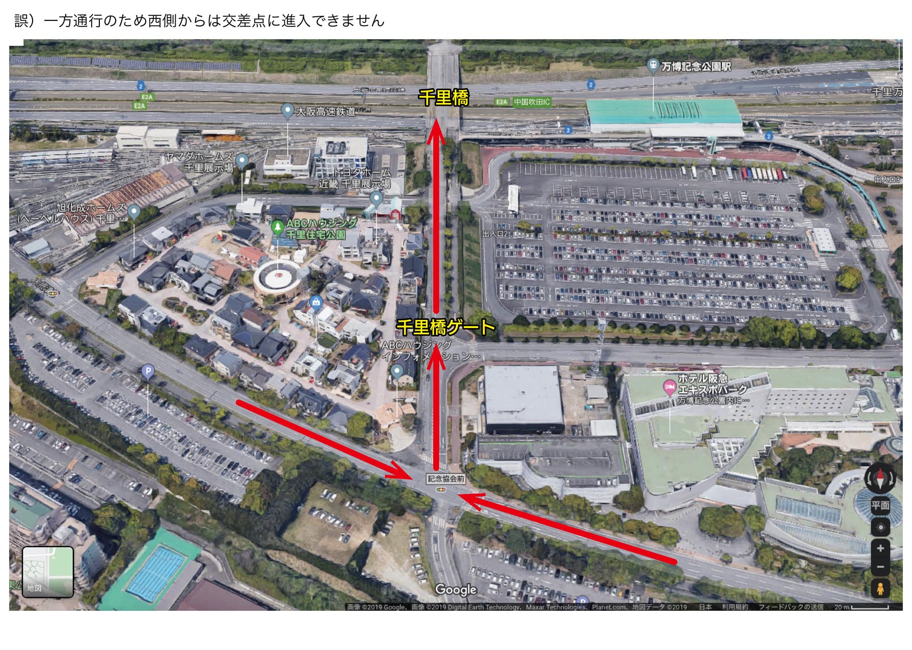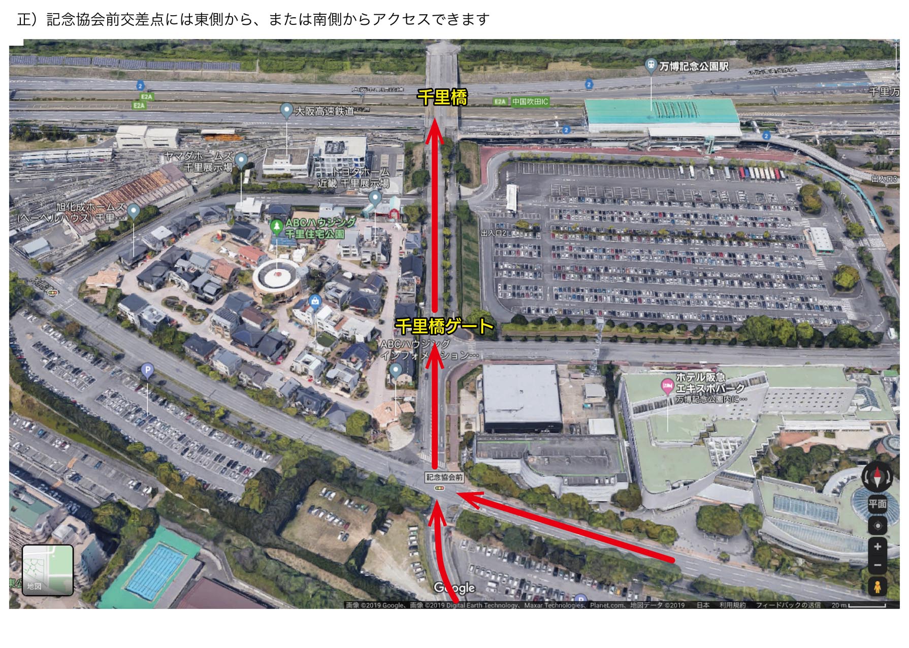 エントリー資料の搬入経路に一部誤りがあったため、お詫びして訂正いたします。 搬入口の千里橋ゲートに進入する「記念協会前交差点」への正しい経路については、下の画像をご参照ください。 みなさま、会場までお気をつけてお越しください。